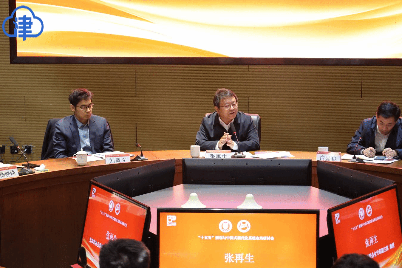 主题研讨一由天津大学马克思主义学院副院长宋建丽教授主持。西南大学党委常委、副校长白显良,南开大学党委常委、宣传部部长刘凤义,兰州大学马克思主义学院院长蔡文成,以及天津大学马克思主义学院副院长杨文圣等专家分别发言。