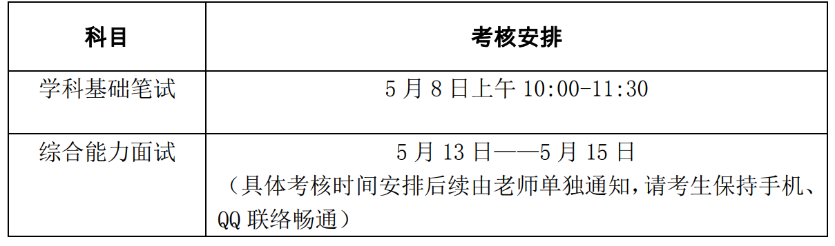 考核说明:基于考核方式的调整,相较于已公布的招生办法,我院对笔试与面试的考核流程与内容做出相应调整,具体以本通知为准。