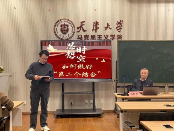 2025年11月14日下午,我院邀请吉林大学哲学基础理论研究中心副主任、国家“万人计划”教学名师孙利天教授,做客“思想时空”,开展以“如何做好‘第二个结合’”为主题的学术讲座。本次讲座由天津大学马克思主义学院马明副书记主持,我院部分教师和本硕博同学现场聆听学习,学术交流氛围浓厚。