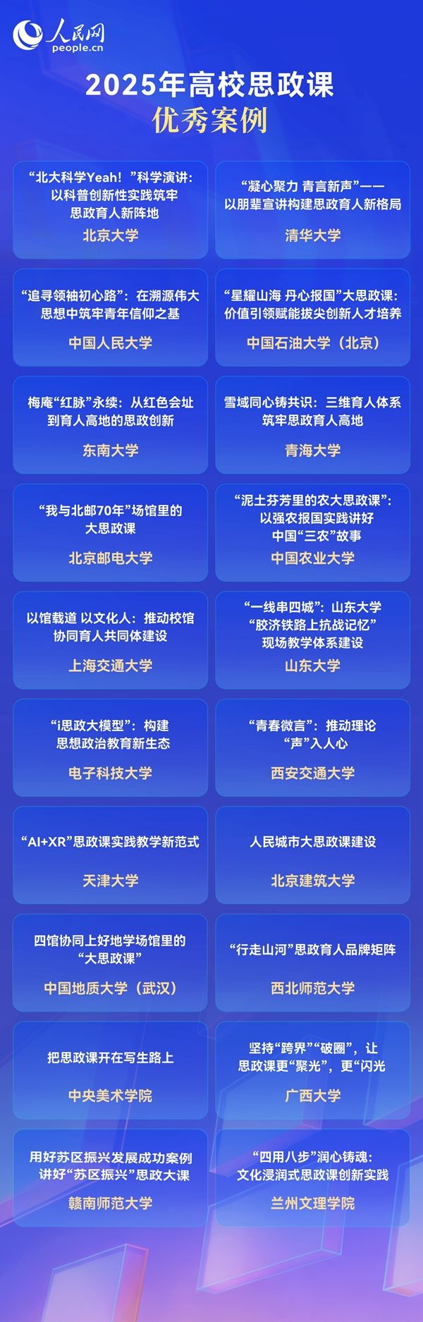 论坛上,人民网发布2025年高校思政课改革创新情况分析报告,并公布优秀思政课程案例(全国仅20项)。天津大学马克思主义学院提交的“‘AI+XR’赋能思政课实践教学新范式”教学案例成功入选。这是继“‘人人门门堂堂’思政金课”入选2024年高校思政课改革创新案例后,我校再次入选。
