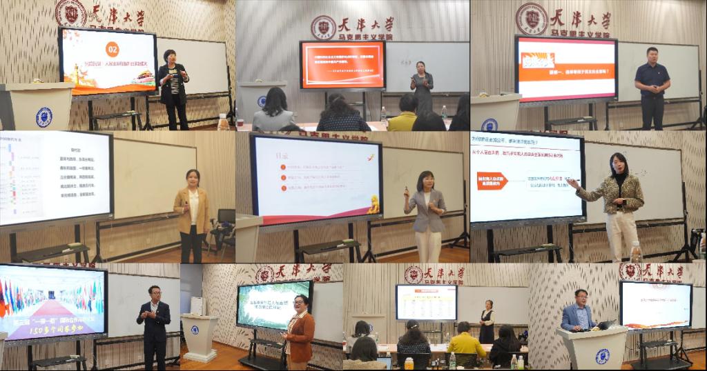 通过随机抽签,来自天津农学院教师王敏、天津城建大学教师高建华、天津城建大学教师杨贺、天津商业大学教师管西荣、天津科技大学教师杨静逸、中国民航大学教师田蕊、天津商业大学教师武强、天津工业大学教师李倩、天津农学院教师陶亚敏和天津职业技术师范大学教师张永勇依次上台展示,分别从全过程人民民主、自我革命、生物多样性、和美乡村等主题展开课程内容,充分结合了习近平新时代中国特色社会主义思想和党的二十大精神。