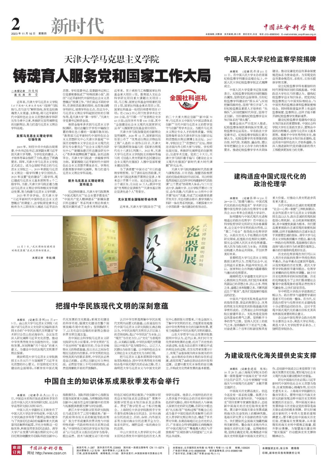 经过持续建设,天津大学马院聚焦“中国式现代化”“社会主要矛盾变化”“中国共产党人精神谱系”“新媒体意识形态建设”等系列重大理论和重大现实问题形成了众多优秀科研成果。近年来,累计承担马工程暨国家社科基金重大项目1项,教育部人文社会科学研究项目重大课题攻关项目1项,马工程、国家社科基金特别委托项目2项,国家社科基金重点项目2项,国家社科基金一般项目和青年项目17项;在CSSCI核心期刊发表学术论文200余篇,在“四报一刊”发表理论文章60余篇;出版学术专著100余部,其中“全面建设社会主义现代化国家研究丛书”入围国家出版基金资助项目。